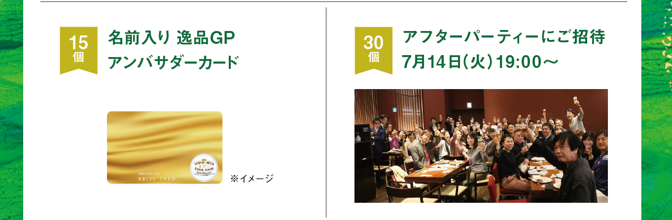 更に15個スタンプを集めた方は昨年大好評だった「名前入り 逸品GPアンバサダーカード」が授与されます。このカード持っていると色んな特典があります。恵比寿駅前盆踊り大会・氷川参道櫓まつり・恵比寿ビール坂祭り・恵比寿神社べったら市でヱビスビールを提供する「あわえびす」のブースでこのカードを提示すると無料で1杯振舞われるという「お神酒」スタイルの縁起の良いカード。