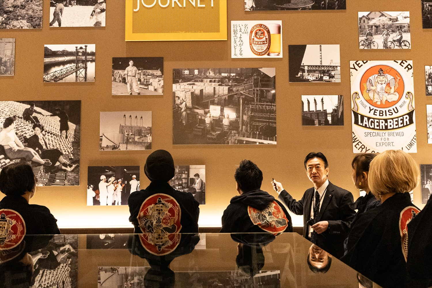 「マッシング」している間に今回の地元メンバーでヱビスビールの歴史をツアー形式で見学。街と共に歩み130年以上続いてきた唯一無二のブランドルーツを旅するように見学。解説はYEBISU BREWERY TOKYO 統括マネージャーの小野寺さん。まだ恵比寿にビール工場があった昭和の時代を知る小野寺さんのお話を交えて地元の皆で振り返ります。